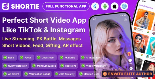 Shortie - Short video & Live streaming app with admin panel | Android, iOS & Web | Tiktok Clone - Shortie is a powerful and fully-featured short video platform built with Flutter for both Android